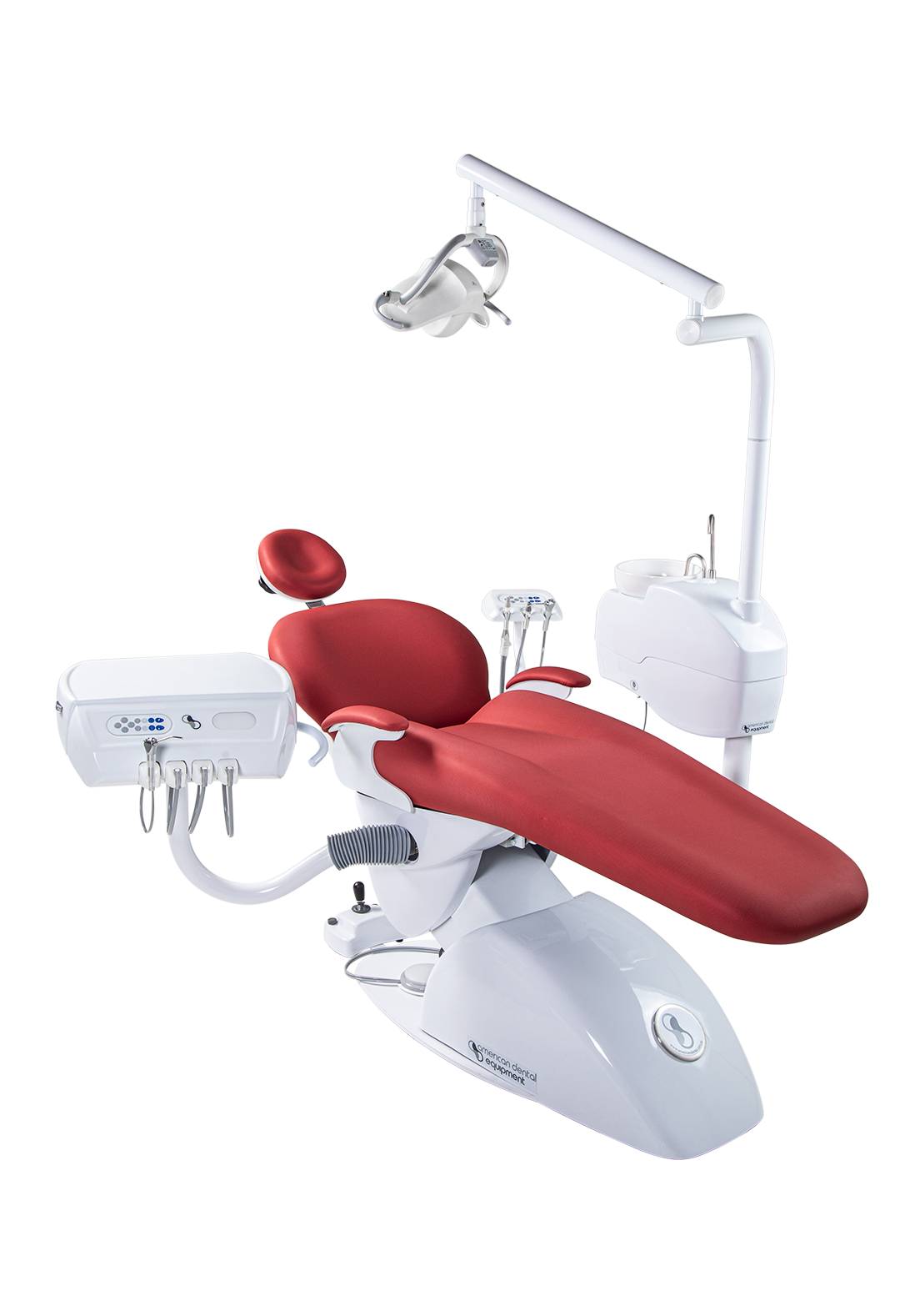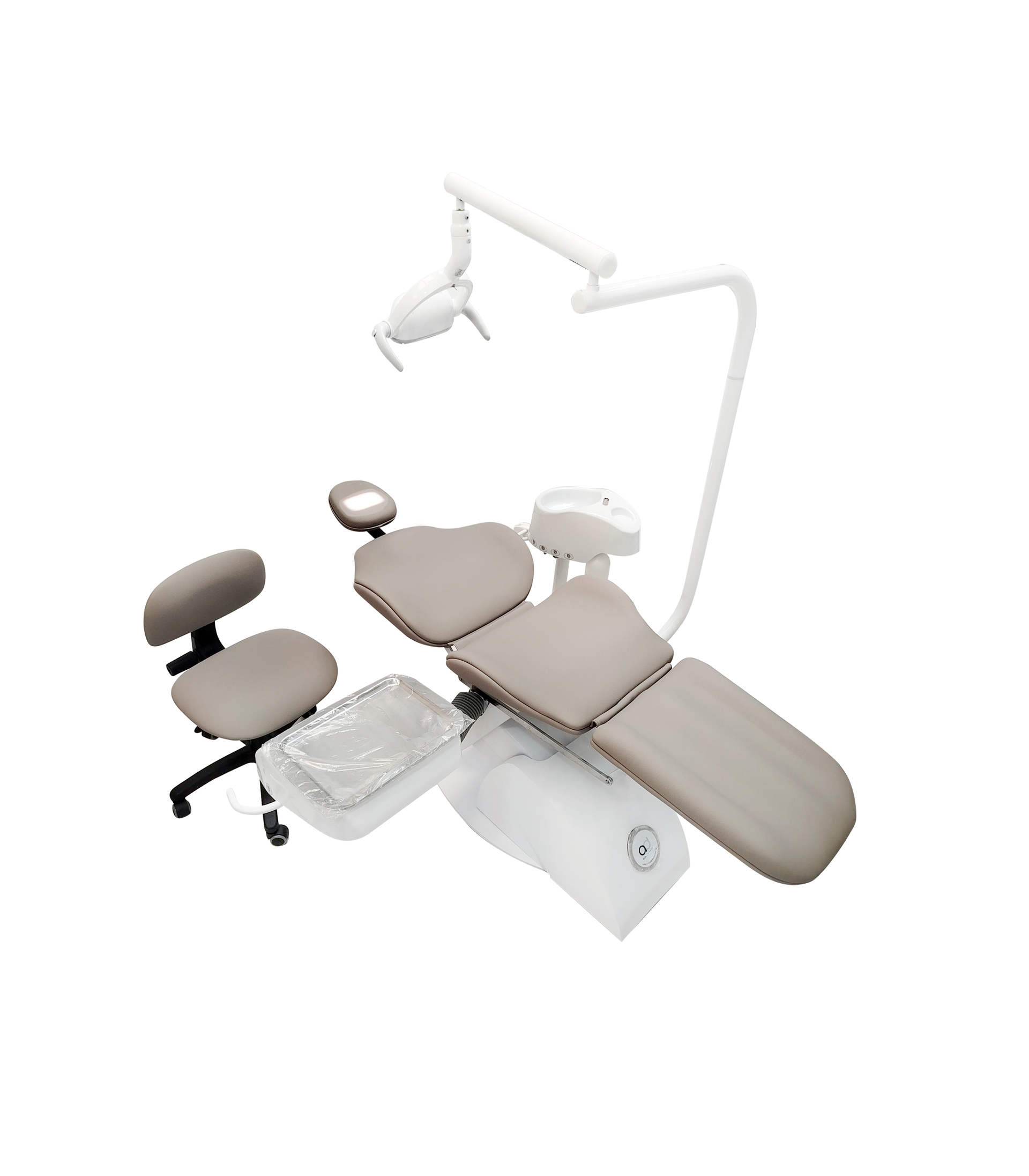 Unidad Odontológica eléctrica básica en acero inoxidable con escupidera en material de alta resistencia con taza porcenalizada y lámpara LED china.